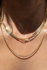 Make stacking your necklaces effortless with this dainty pre-layered figaro and herringbone chain necklace!