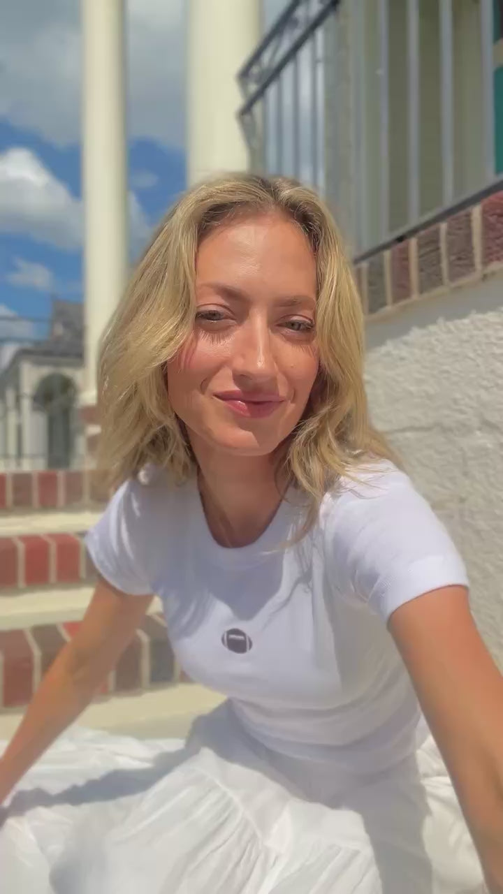 The Ribbed Baby Tee features a fitted silhouette that hits perfectly at your high-rise bottoms and is made from a lightweight, barely there cotton blend. Topped off with an in-house, custom-embroidered and minimal design.